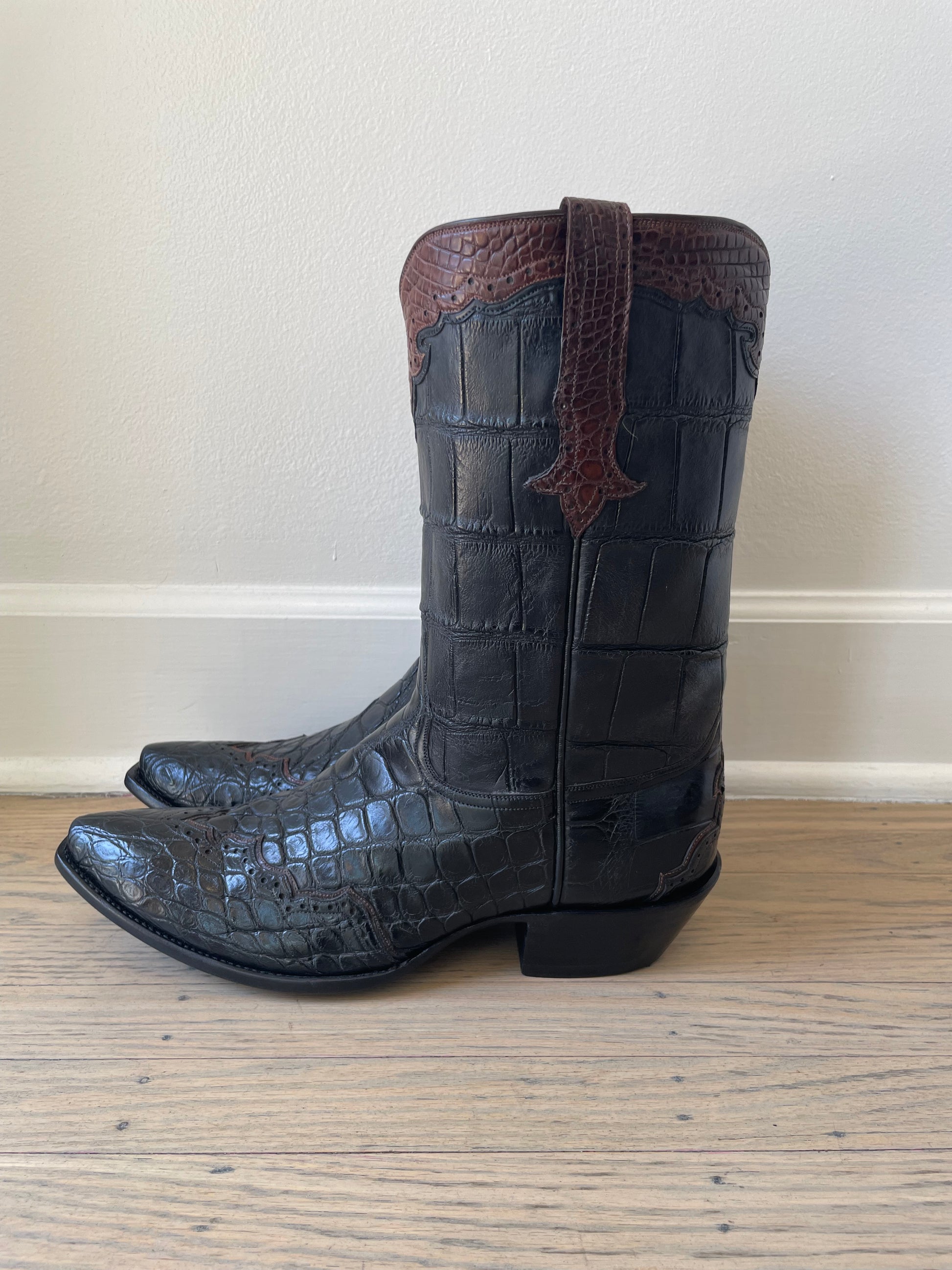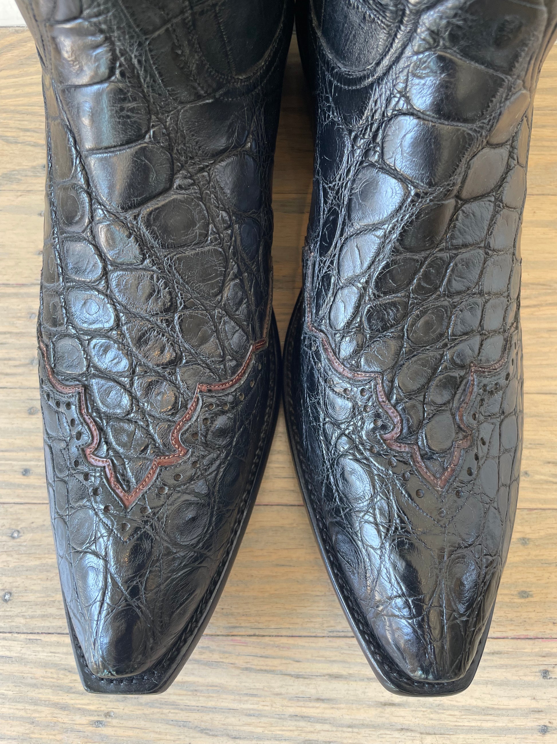 - Matching American Alligator Belly Perforated Wingtip, Heel Foxing with Sport Rust Gator Collar and Pullstraps