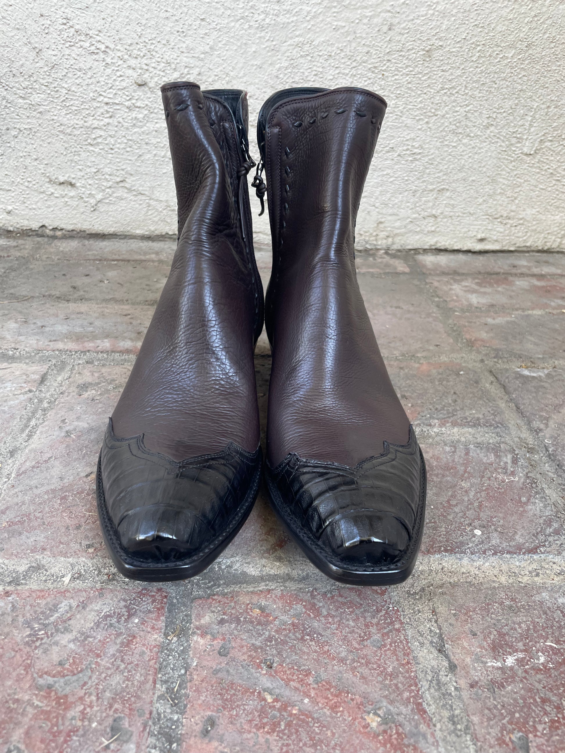 Espresso Calf Et Noir Caiman With Buckstitching Zorro