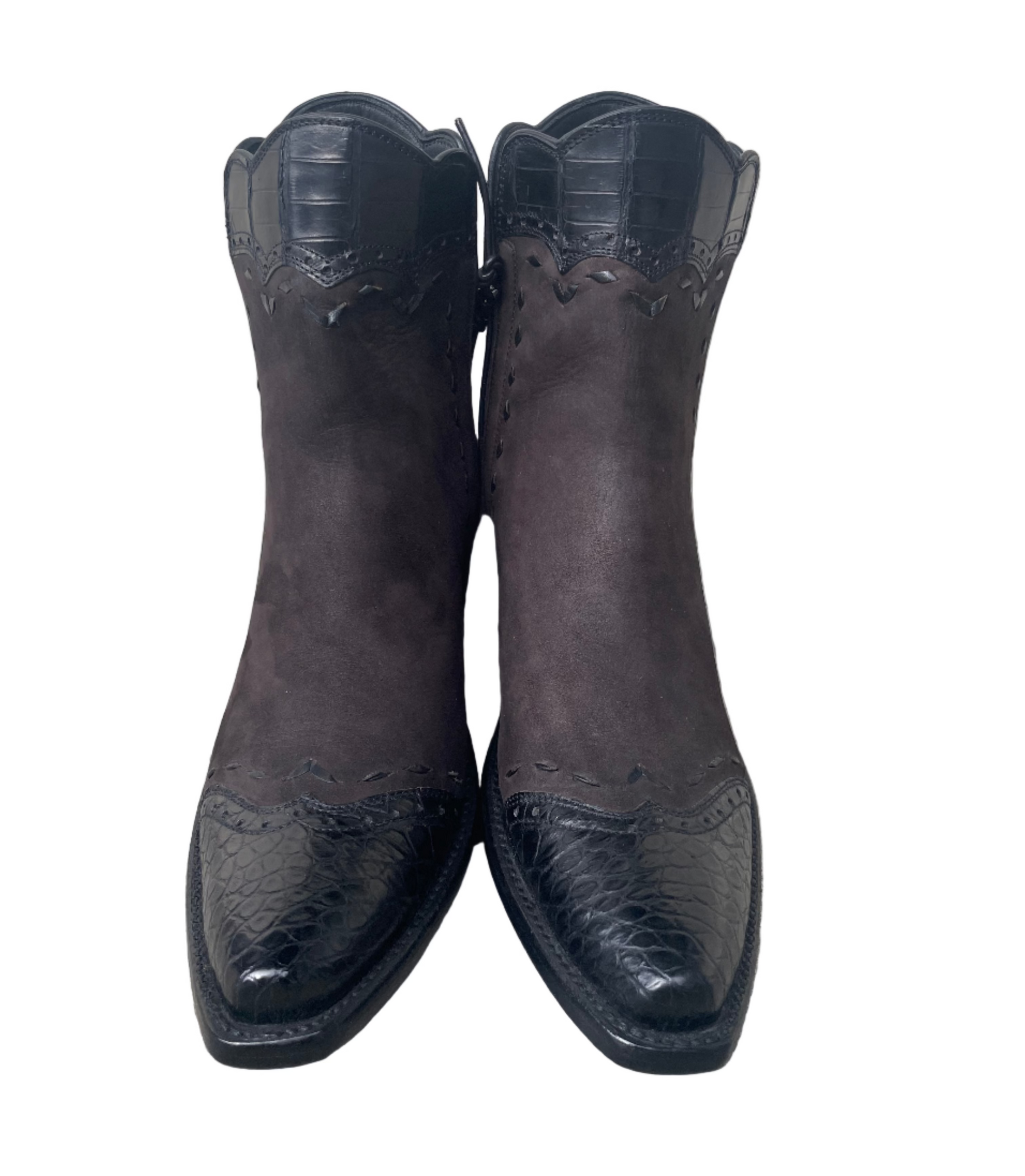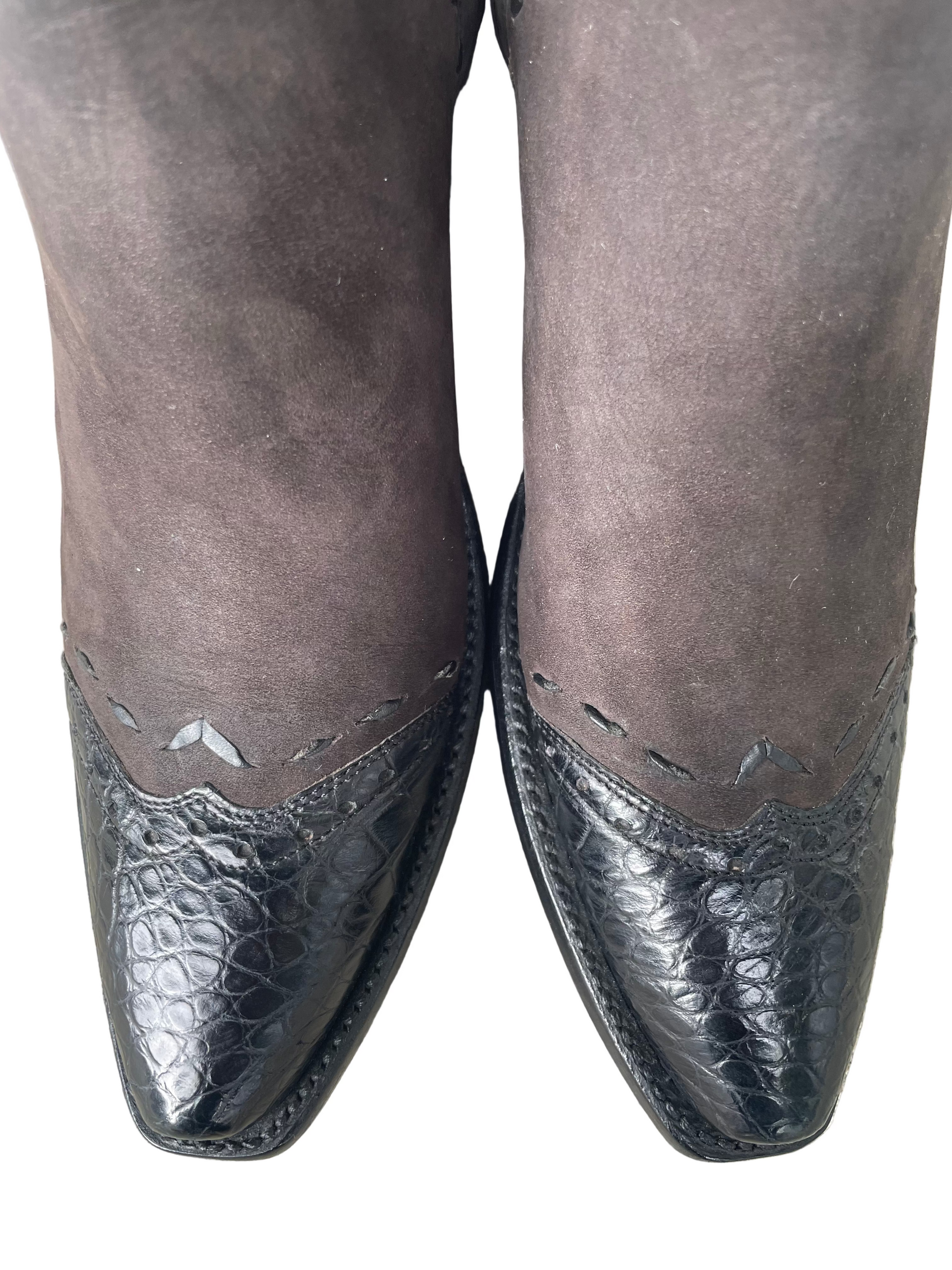 Espresso Nubuck with Noir Crocodile Trim Zip