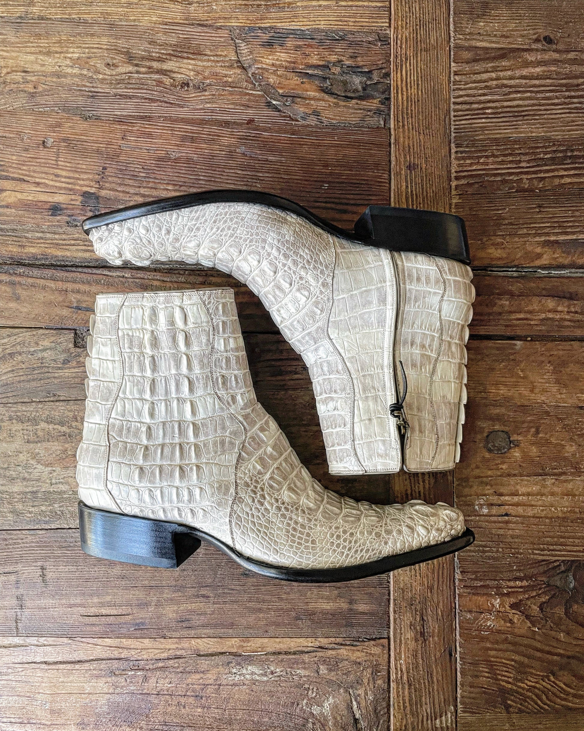 Full Blanc Antiqued Hornback American Alligator Zip