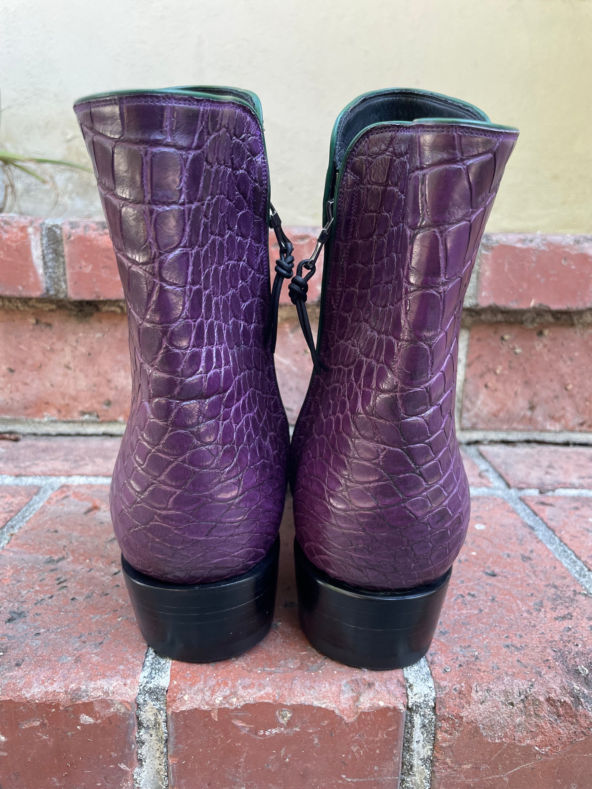 Purple Shell Cordovan with Violet Gator Belly Ankle Zip