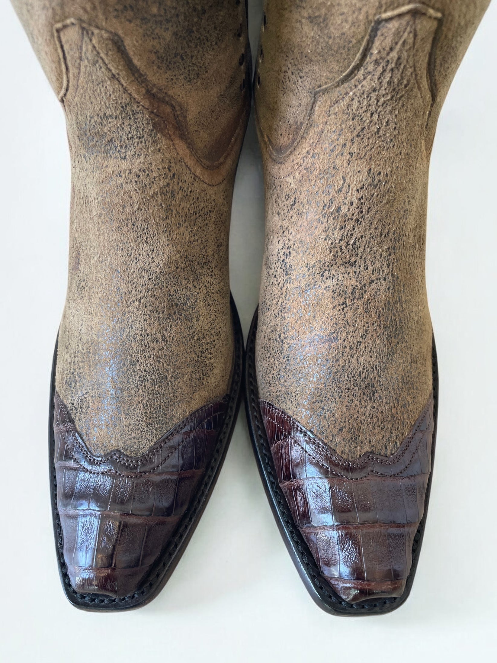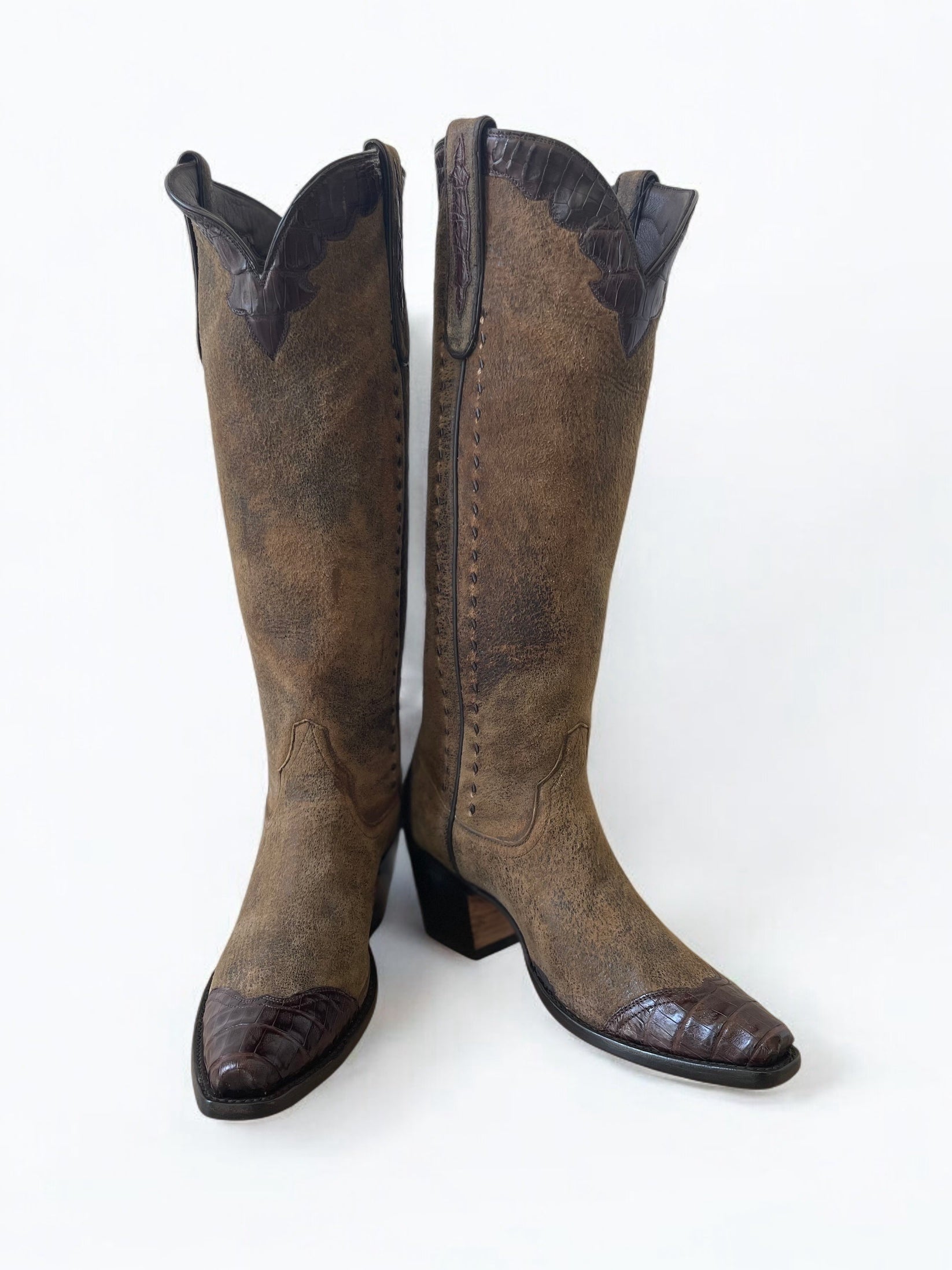 Tall Camelbreak Lambsuede Cowgirl w/Caiman Belly Trim