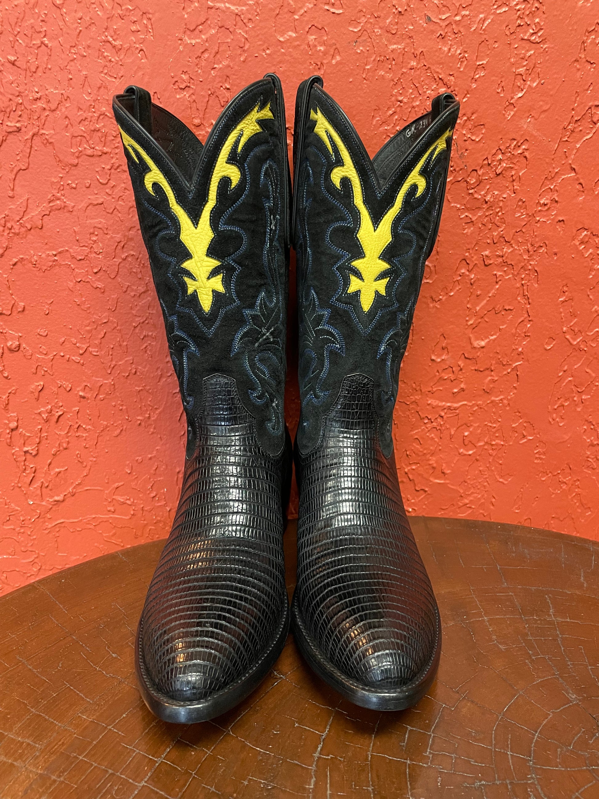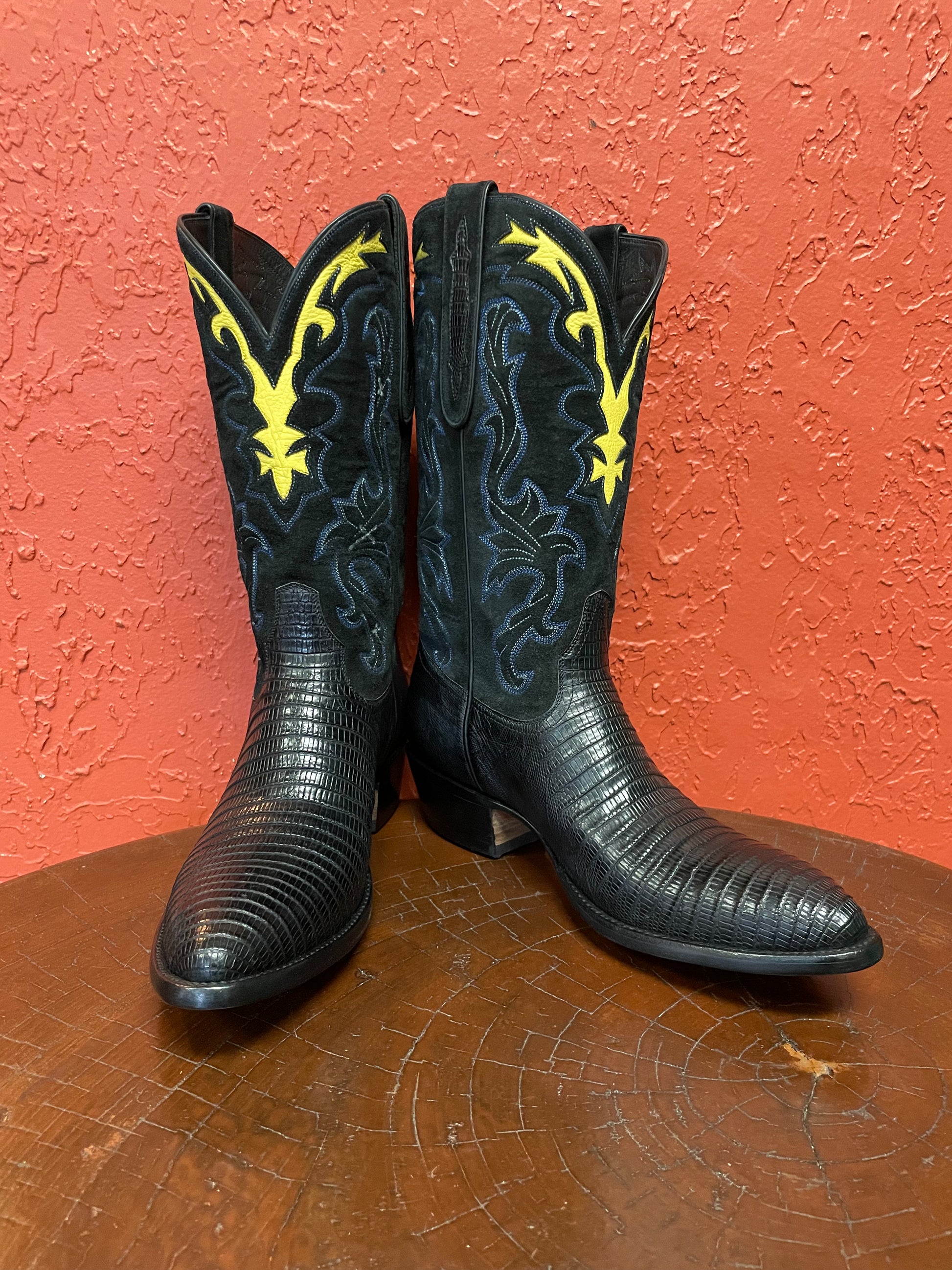 Teju Lizard Noir Et Noir Roughout Cowboy Boot